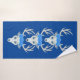 This set of bath towels that includes a wash towel, hand towel, and bath towel are a deep blue with whimsical white deer heads that have large antlers mysterious faces, and pretty blue roses on the top of their heads. Purchase the whole set or individually.