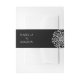 Celebrate your special day with a touch of elegance and sophistication with our unique and artfully designed wedding invitation set. Featuring a black background adorned with a mesmerizing white rotational symmetry pattern of swashes and dots making up a flowery pattern, this invitation beautifully captures the essence of timeless romance and modern charm.