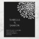 Celebrate your special day with a touch of elegance and sophistication with our unique and artfully designed wedding invitation set. Featuring a black background adorned with a mesmerizing white rotational symmetry pattern of swashes and dots making up a flowery pattern, this invitation beautifully captures the essence of timeless romance and modern charm.