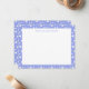 Note card featuring a seamless pattern of trailing white stars paired with a white square where your personalised monogram is written in a sans serif font. You can find more background colour options in our store.