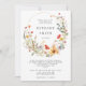 This elegant wedding invitation features a delicate wreath of rustic watercolor wildflowers surrounding the bride and groom's names. Perfect for whimsical spring and summer weddings.