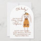 Celebrate your upcoming arrival with this Whimsical Bunny Baby Shower Invitation. The design features a charming hand-drawn bunny in a mustard yellow dress paired with a warm ochre and sage green wildflower pattern. It is the perfect choice for parents hosting a gender-neutral or woodland-themed celebration.