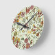 Whimsical Wildflower Garden & Bumblebee Pattern Round Clock