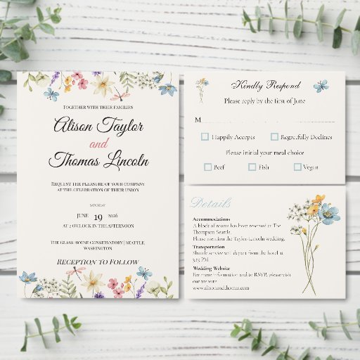 Whimsical Wildflower Meadow Butterfly Wedding Invitation