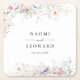 Whimsical Wildflowers & Blue Birds Watercolor Square Paper Coaster