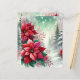 Transform your holiday crafting projects with the Whimsical Winter Wonderland Poinsettia Scrapbook Paper Sheets. This stunning double-sided scrapbook paper features a beautiful watercolor Christmas scene where vibrant red poinsettias bloom amidst a snowy winter wonderland. The deep red petals of the poinsettias stand out against the snow-dusted pine trees, creating a festive contrast that captures the magic of the season. Soft watercolor splashes blend whites, greens, and reds together, evoking a dreamy, whimsical atmosphere perfect for adding a touch of holiday cheer to your scrapbooking, card making, or DIY projects. Hints of stardust and snowflakes float delicately throughout the design, enhancing the magical feel of the winter scene.