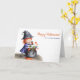 Whimsical Witch and Frog in Cauldron Halloween Card
