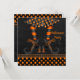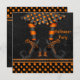 Funny, cute Halloween party invites for kids, family and adults with a pair of whimsical witches legs and feet in funky black curly toe boots. The background is an elegant black vintage grunge shabby chic damask with an orange polka dots border and printed black lace and bows. Please note: All invitations on the Zazzle website have flat printed images. Fun, stylish humourous witch invitations for children's, family and adults parties. All of the text is fully customisable / personalizable to suit your needs - lots of fonts & colours to choose from. These whimsical invitations are illustrated on both sides. Original artwork©delightful-doodles.com If you need any assistance customising your product please contact me through my store and I will be happy to help.