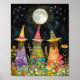 Whimsical Witches Under Fullmoon Colourful Art Poster