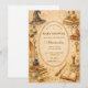 This enchanting baby shower design features a magical vintage storybook scene filled with charming wizard-inspired details. Delicate illustrations of potion bottles, spell books, antique keys, candles, and a wise little owl surround an ornate decorative frame, creating a whimsical atmosphere perfect for a magical celebration. The warm parchment background and soft watercolor textures give the design a nostalgic fairy-tale aesthetic inspired by classic fantasy illustrations. Ideal for wizard-themed baby showers, magical woodland celebrations, or whimsical fantasy gatherings welcoming a little wizard on the way.