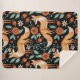 Snuggle up in enchanting style with this beautiful woodland-themed sherpa blanket. Featuring a charming repeating pattern of hand-painted watercolor foxes set against a contrasting black background, this blanket brings a touch of nature's magic into your home. The adorable foxes are surrounded by a lush arrangement of folk-art-inspired flowers in shades of burnt orange and cream, with elegant teal foliage. The ultra-soft and cosy sherpa fleece backing makes this blanket irresistibly warm and comfortable. It's the perfect accent for a nursery, a cosy addition to your living room sofa, or a thoughtful gift for any fox lover or fan of rustic, whimsical decor.