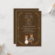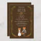 This charming wedding invitation collection features a well-dressed fox couple surrounded by a garland of hand-drawn leaves in a rustic wreath arrangement.