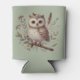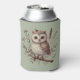 Whimsical Woodland Owl Botanical Illustration Can Cooler