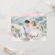 This elegant and trendy wedding elopement announcement features lovely black calligraphy over your personal wedding photo, and a soft pink watercolor wash on teh back.