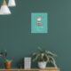 Whimsical poster wall art features girl with hair buns secured with knitting needles winding a ball of yarn. "Life is better with yarn" white text on turquoise background