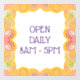 For announcing sales, times open, use other door with an arrow, YOU can easily customise this cute square cling!