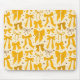 Coquette and whimsical mousepad featuring hand drawn illustration of yellow bows and heart pattern.