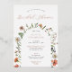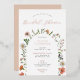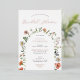 An elegant foil bridal shower invitation in vintage boho spring floral theme that features watercolor wildflowers and greenery with an arch shape element that highlights the bridal shower details.