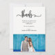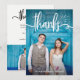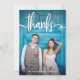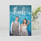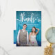 This trendy and stylish wedding thank you card features your own full bleed wedding photo on the front, with whimsical white typography and space for your name. The back features the words "thank you" in the same typography but in black, with room for your own personal note and another photo.