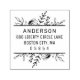Custom botanical return address rubber stamp featuring whimsy hand-drawn leaves framing a modern fonts. Click on "Personalise this template" and add your family name and return address details and take home the perfect one of a kind design for you! Stand out when you send out your mail! Available with 9 different ink colours.