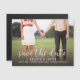 Whimsical and stylish save the date announcement magnet with photo featuring white modern calligraphy script.