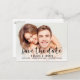 Whimsical and stylish save the date announcement with photo featuring black modern calligraphy script.