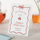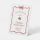 Add a touch of playful charm to your celebration with this whimsical red "She's the Cherry on Top" pedestal sign design. Featuring a wavy, hand-drawn frame and a sweet bow at the top, the artwork centres around a pair of bold red cherries beneath the cheerful phrase "She's the cherry on top." This fun, fruit-inspired layout is ideal for bridal showers or celebratory events with a lighthearted, retro flair. The red text and illustrations pop beautifully against a white background. Fully customisable with your event name, date, and location for a personal, stylish touch.