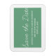 Whimsy Save the Date Magnet in green and white with a simple and fun script typography design. This trendy save the date magnet is easy to customise with your wedding details. For more customisation options, click on the Customise It button.