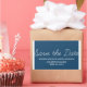 Whimsy Save the Date Stickers in blue and white with a simple and fun script typography design. These trendy save the date stickers are easy to customise with your wedding details. For more customisation options, click on the Customise It button.