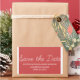 Whimsy Save the Date Stickers in red and white with a simple and fun script typography design. These trendy save the date stickers are easy to customise with your wedding details. For more customisation options, click on the Customise It button.