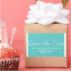 Whimsy Save the Date Stickers in turquoise and white with a simple and fun script typography design. These trendy save the date stickers are easy to customise with your wedding details. For more customisation options, click on the Customise It button.
