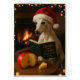 Humorous Christmas postcard featuring a white / cream Whippet reading 'The Cheese Tax at Home Regulations 2025' whilst trying to resist the urge to eat the cheese that someone's left on the table right in front of its nose!