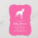 Include the big brother or sister fur baby in the celebration with this adorable Whippet baby shower design! Perfect for a puppy lover with a baby on the way. The Whippet is next to an adorable vintage carriage. The pink makes it perfect for a baby girl on the way!
