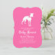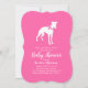 Include the big brother or sister fur baby in the celebration with this adorable Whippet baby shower design! Perfect for a puppy lover with a baby on the way. The Whippet is next to an adorable vintage carriage. The pink makes it perfect for a baby girl on the way!