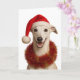 One extremely cute white whippet sporting a Santa hat, adorned in tinsel and looking very happy that it's Christmas!