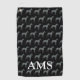 Whippet / Italian Greyhound dog silhouette cute yellow and blue grid abstract pattern black background golf towel. Personalise with your three initials over the repeating dog shape. Perfect day of golf for dad with his beloved furry friend. Matching golf balls are available.
