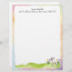 Cute watercolour letterhead for whippet lovers. The whippet letterhead has a watercolour rainbow frame, with watercolour grass and flowers with a sweet whippet standing on the grass.
