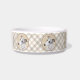 This is a heavy, durable bowl decorated with Tibbies of many colors, the perfect size for hungry/thirsty Tibs. The design is interesting and printing clear.
