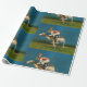 This wrapping paper is illustrated with a rabbit jocky riding a racing whippet.