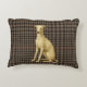 Round cushion featuring a cream . white whippet sitting on a background of tartan / tweed with light and dark brown and orange hues. A lovely cushion which will go with most colours of home decor, this whippet cushion would be perfect for whippet owners and fans, dog lovers and handlers.