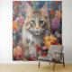 Whiskered Harmony: Cat Blossom Floral Tapestry