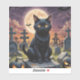 A sleek black cat graces a ghostly graveyard on Halloween night, a symbol of mystery and magic. With an enchanting backdrop of crumbling tombstones and a bright moon, this artwork captures the allure of the supernatural and the thrill of the season. Perfect for those who revel in Halloween’s eerie and enchanting atmosphere!
