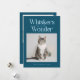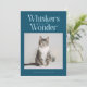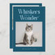 Cute and funny Christmas holiday photo template card for cat owners featuring a typography text at the top that says "Whiskers and Wonder" with a photo of your kitty. You can add another picture on the back with a message. The background is teal.