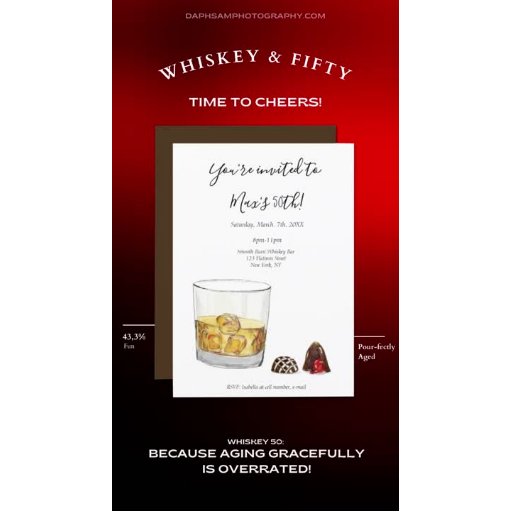 These whimsical watercolor featuring a charming whiskey glass and delectable chocolates, it adds a touch of magic to your 50th birthday invitation envelopes or for your everyday mail.