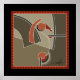 Hard edged graphic art with a textural effect, the whisper of horse and man as one spirit. Soft muted southwestern colours and Native American influence. Original art of Margaret Loftin Whiting.