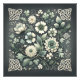 Soft florals intertwine with graceful Celtic knot motifs in a balanced folk composition filled with clover shapes, curling vines, and layered blossoms. Muted sage greens, warm ivory, and deep charcoal create a calm, heritage-inspired palette that feels both old-world and gently modern. The flowing symmetry and botanical details evoke cottagecore charm, Celtic folklore, and a quiet, storybook mood rooted in tradition and nature. AI generated artwork.