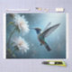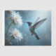 A delicate hummingbird approaches soft blossoms, perfect for adding a touch of elegance to your decoupage creations.