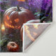 Under the watchful glow of a full moon, a vine-draped archway beckons through a cobblestone path lined with flickering candles and carved jack-o'-lanterns. Ethereal ghosts drift silently near ancient tombstones, their presence illuminated by floating orbs in hues of green, blue, and violet. Bats wheel through the twilight sky as purple blooms and autumnal foliage weave a tapestry of enchantment along the trail. This spectral garden pulses with quiet magic—where every shadow holds a secret and every light feels like a memory reborn.