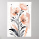 A graceful bouquet of abstract poppy-like flowers emerges from the centre of the composition, rendered in gentle peach-pink hues paired with smoky monochrome leaves. The watercolor-like softness contrasts with the surrounding geometric blush-toned shapes, creating a subtle tension between organic flow and structured form.