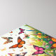 A serene and peaceful scene of butterflies resting on a bed of colourful flowers, surrounded by lush greenery.